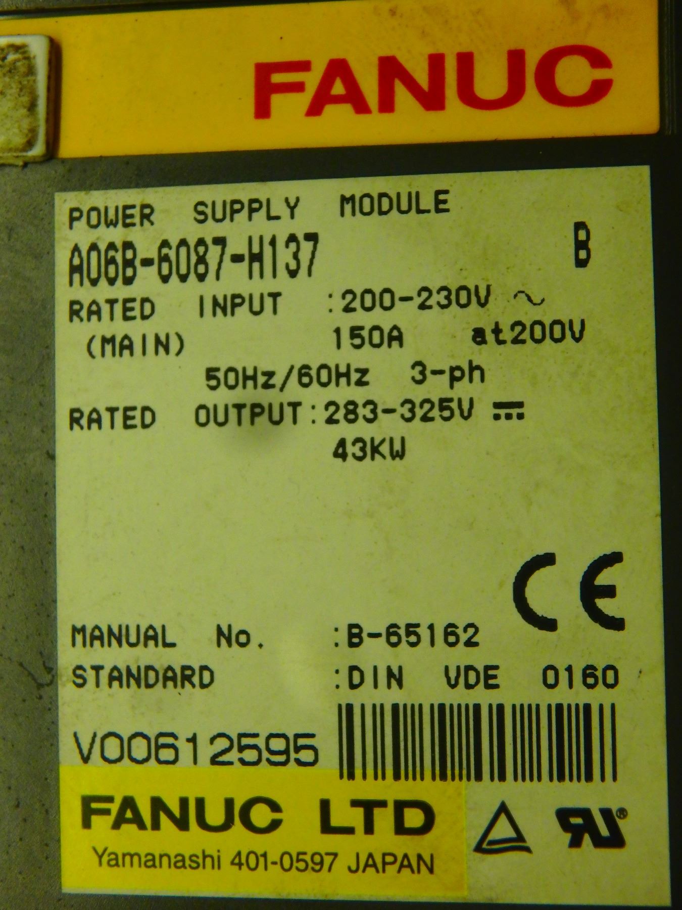 FANUC A06B-6087-H137 REV.B POWER SUPPLY MODULE