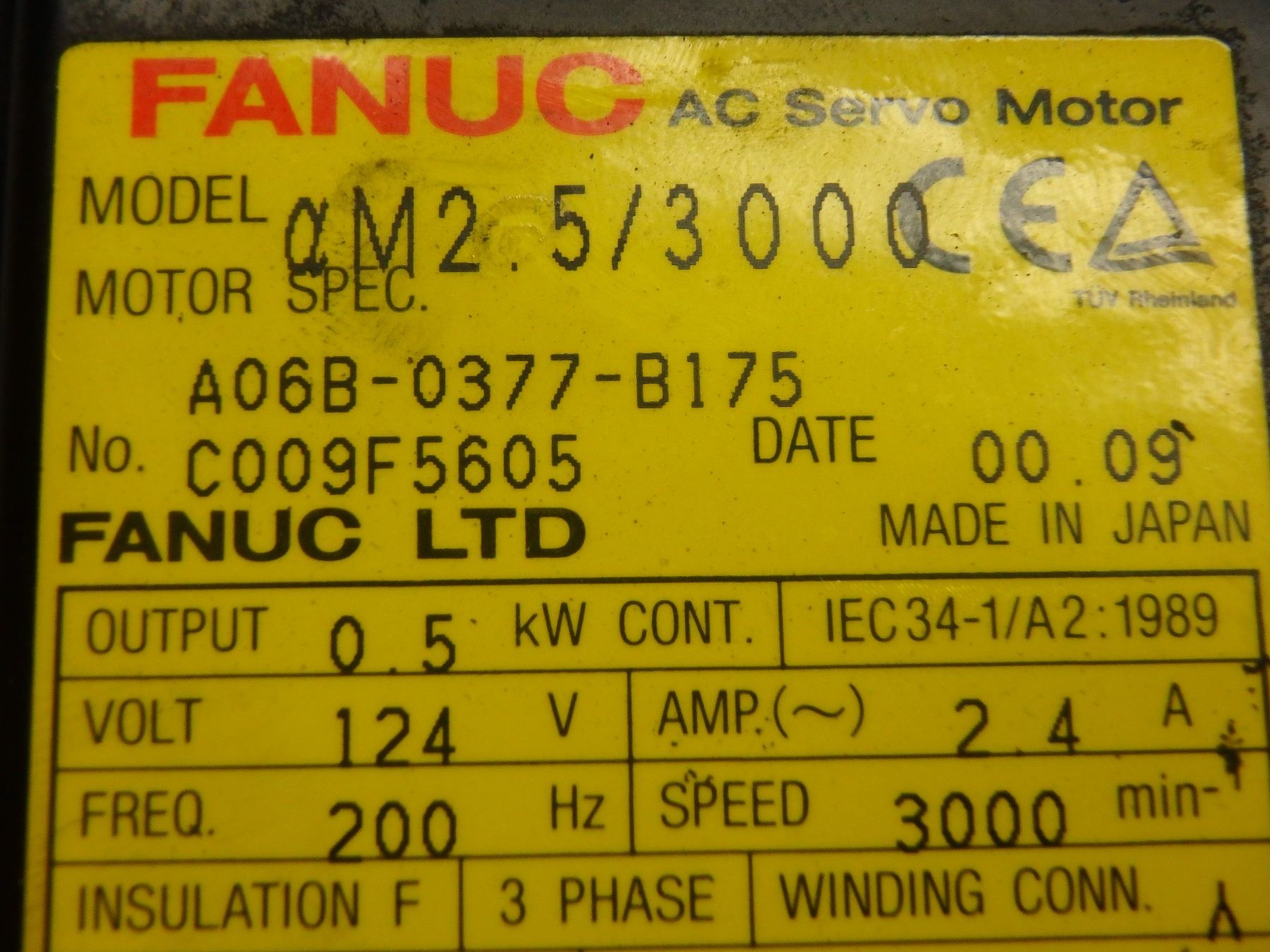 FANUC AM2.5/3000 A06B-0377-B175 AC SERVO MOTOR WITH A860-0360-T001 PULSECODER