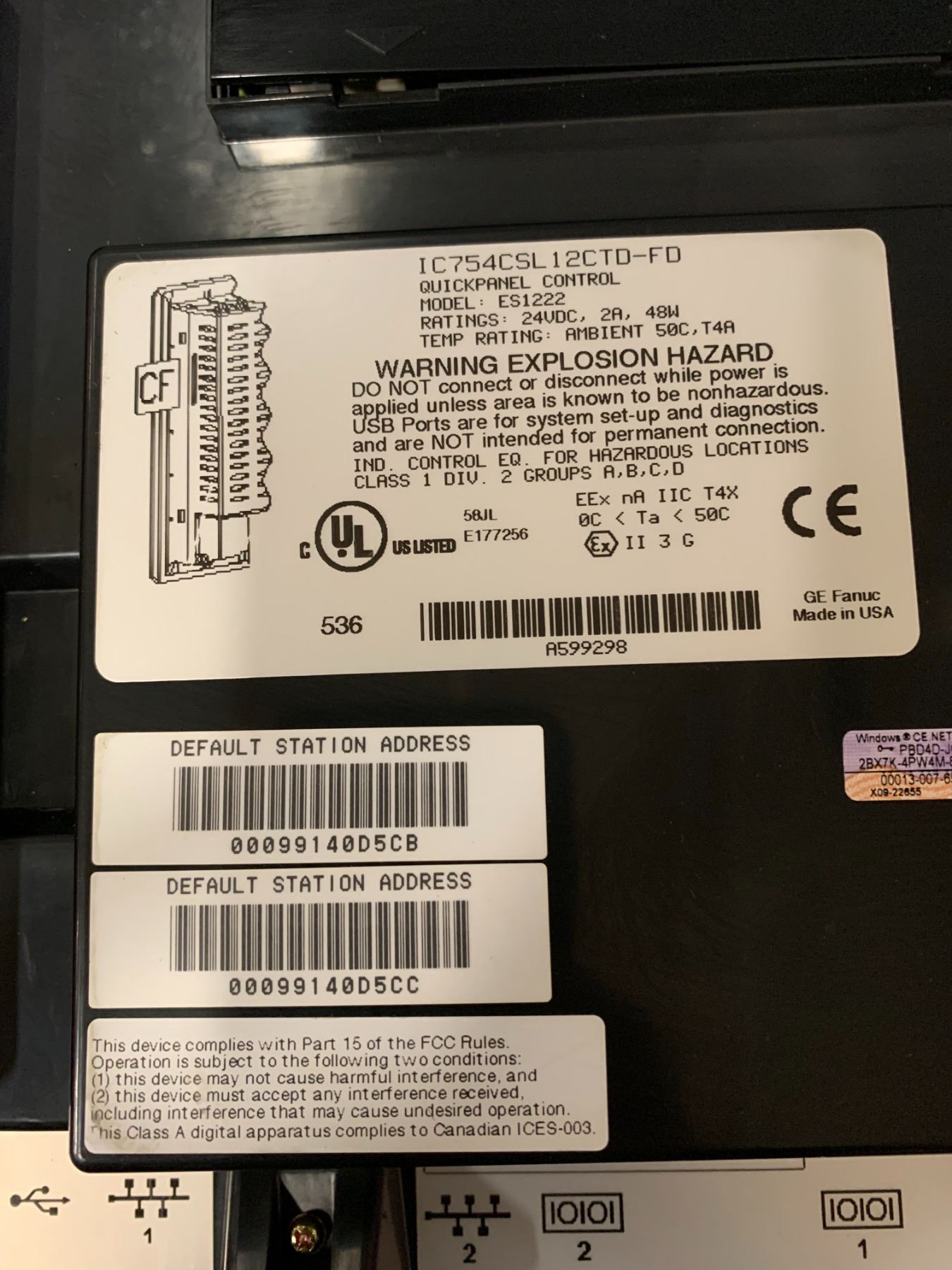 FANUC IC754CSL12CTD-FD QUICK PANEL_MODEL ES1222