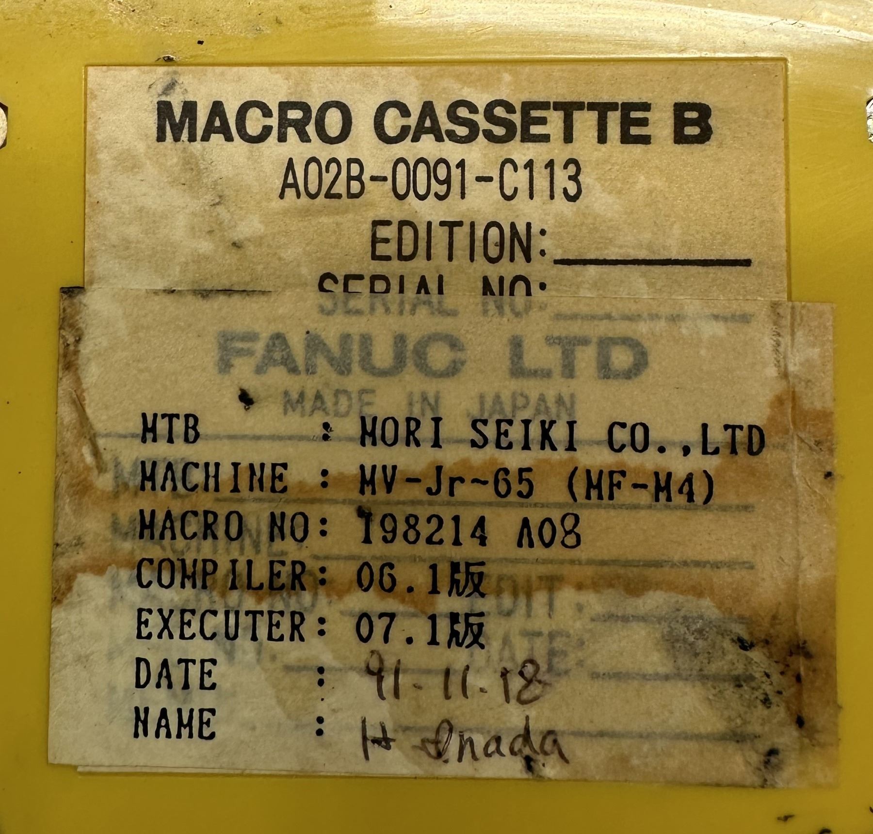 Fanuc #A02B-0091-C113 Macro Cassette B