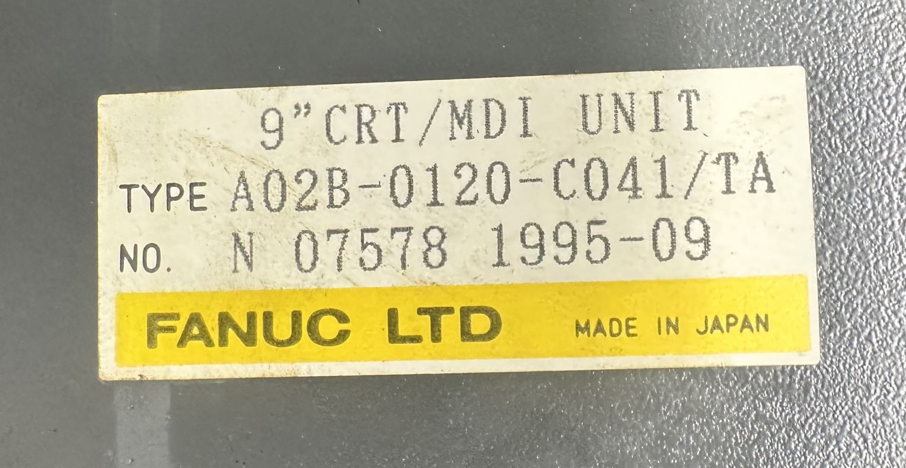 Fanuc #A02B-0120-C041/TA 9" CRT/MDI Unit