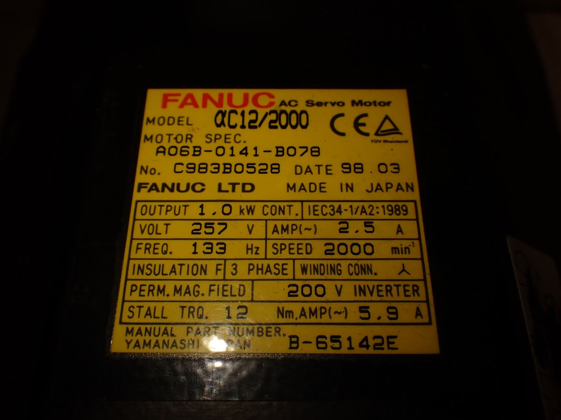 Fanuc #A06B-0141-B078 AC Servo Motor