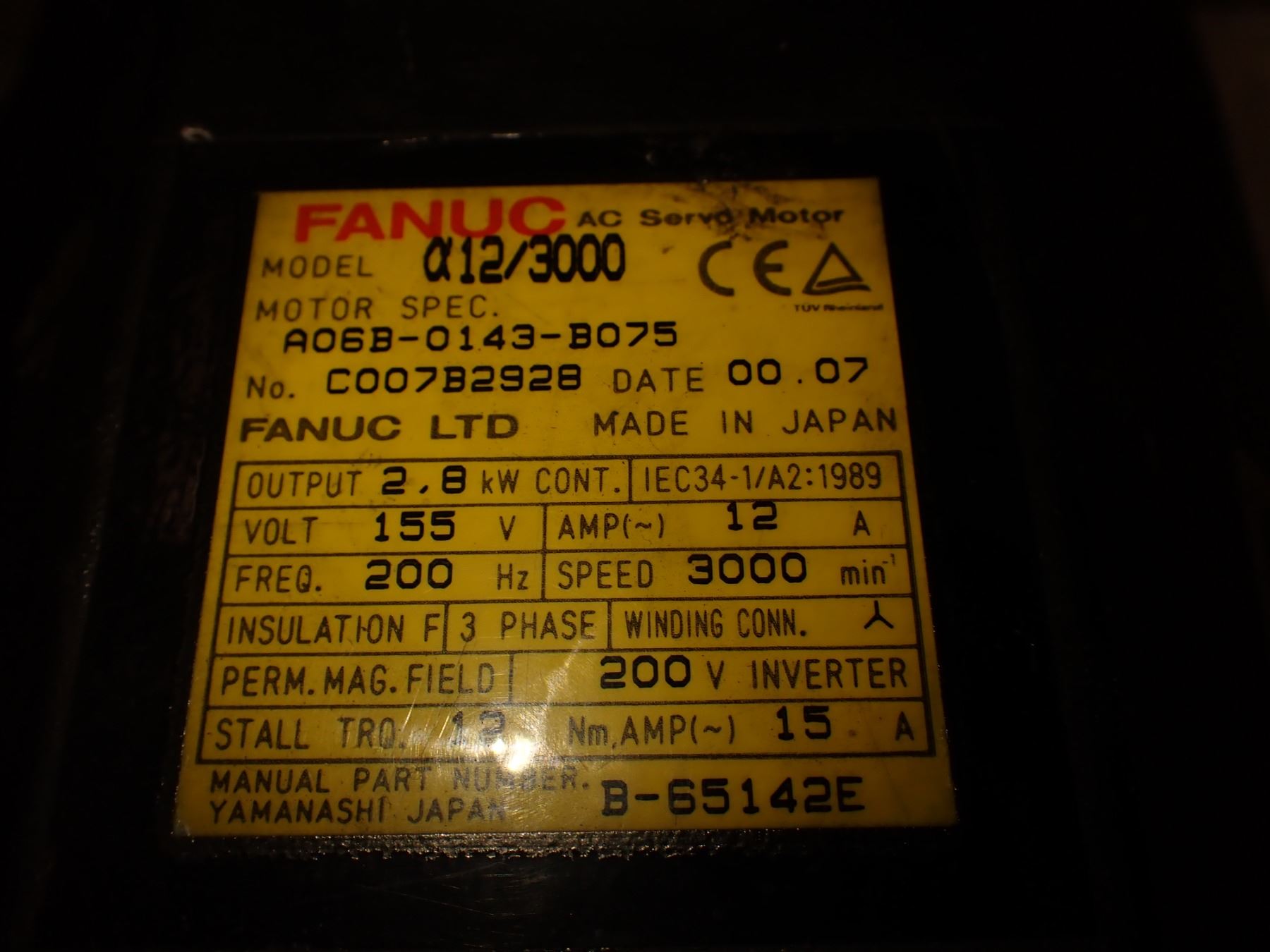 Fanuc #A06B-0143-B075 AC Servo Motor