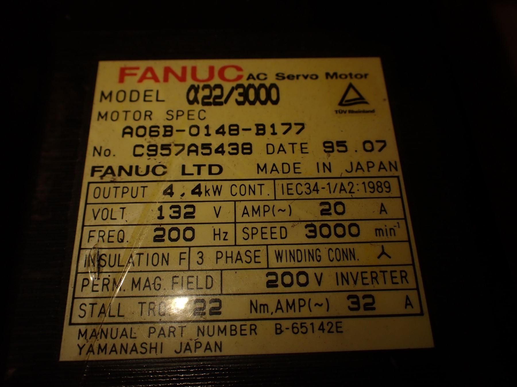 Fanuc #A06B-0148-B177 AC Servo Motor