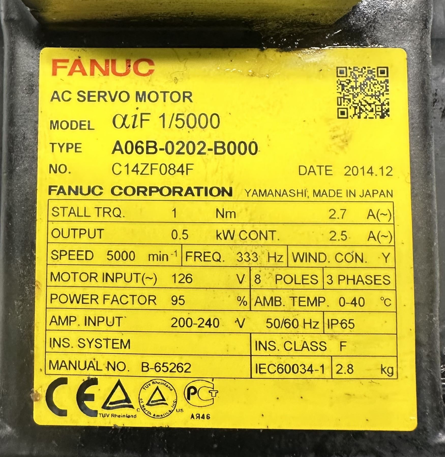 Fanuc #A06B-0202-B000 AC Servo Motor w/#A860-2000-T301 Encoder