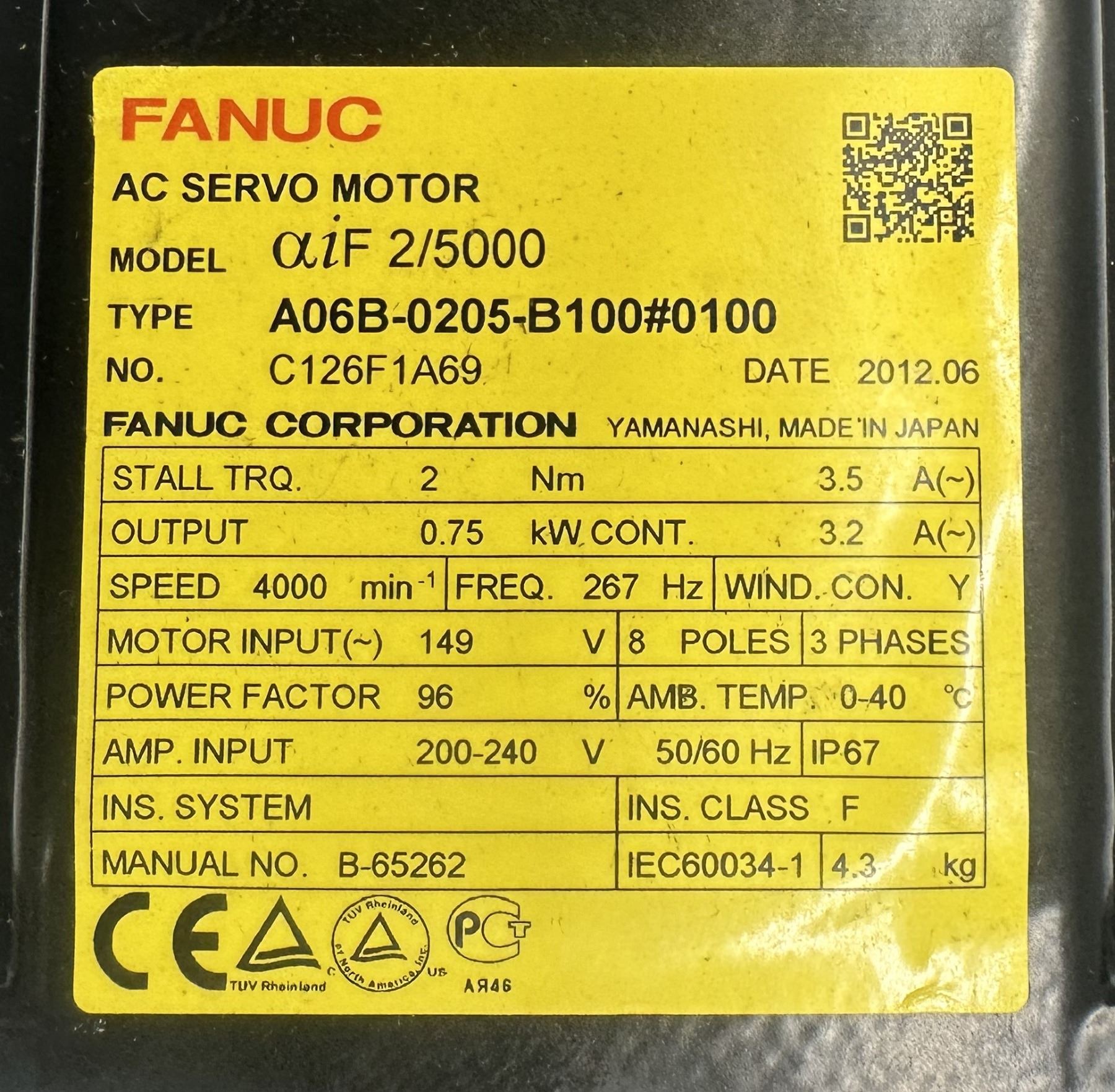 Fanuc #A06B-0205-B100#0100 AC Servo Motor w/#A860-2000-T321