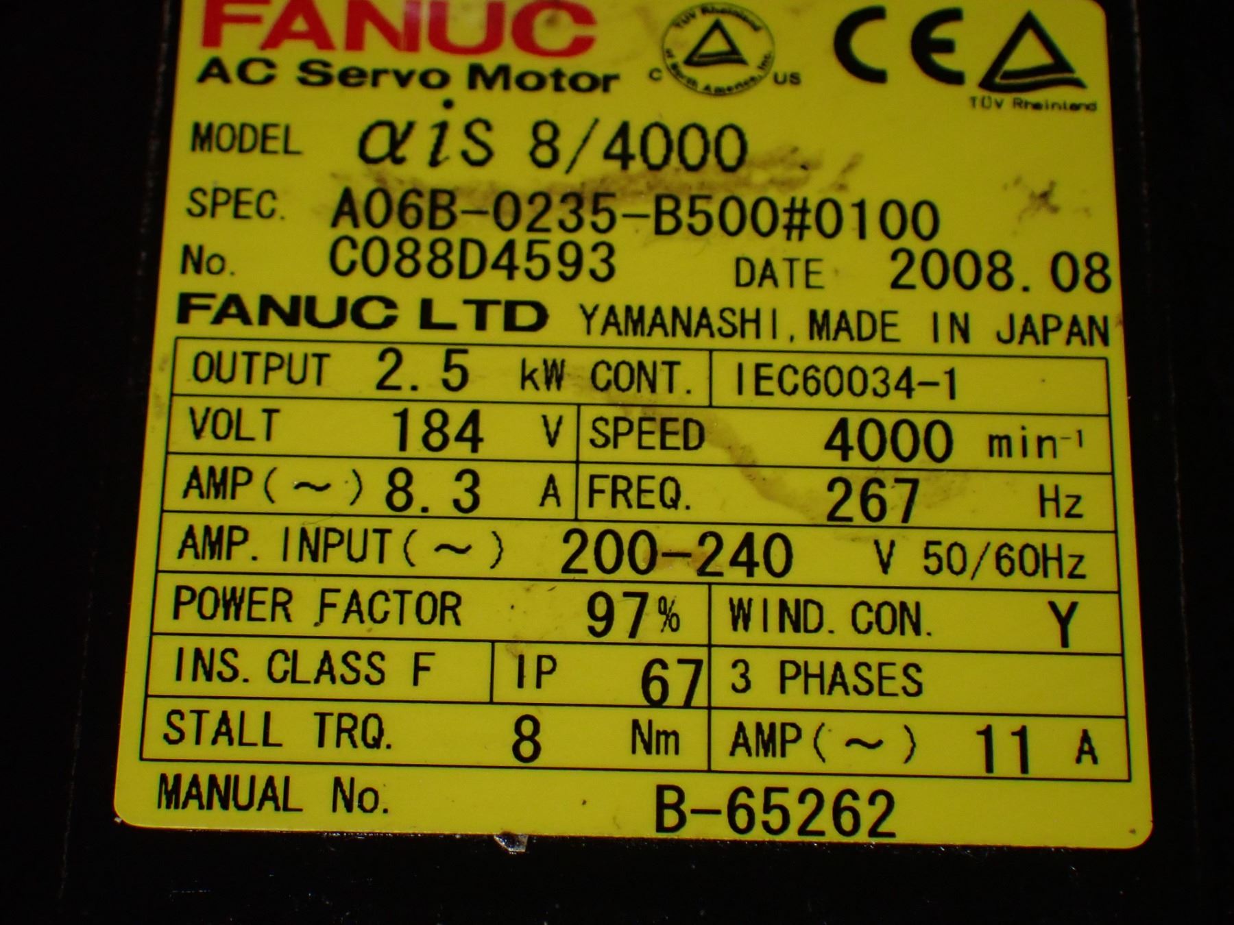 Fanuc # A06B-0235-B500#0100 AC Servo Motor