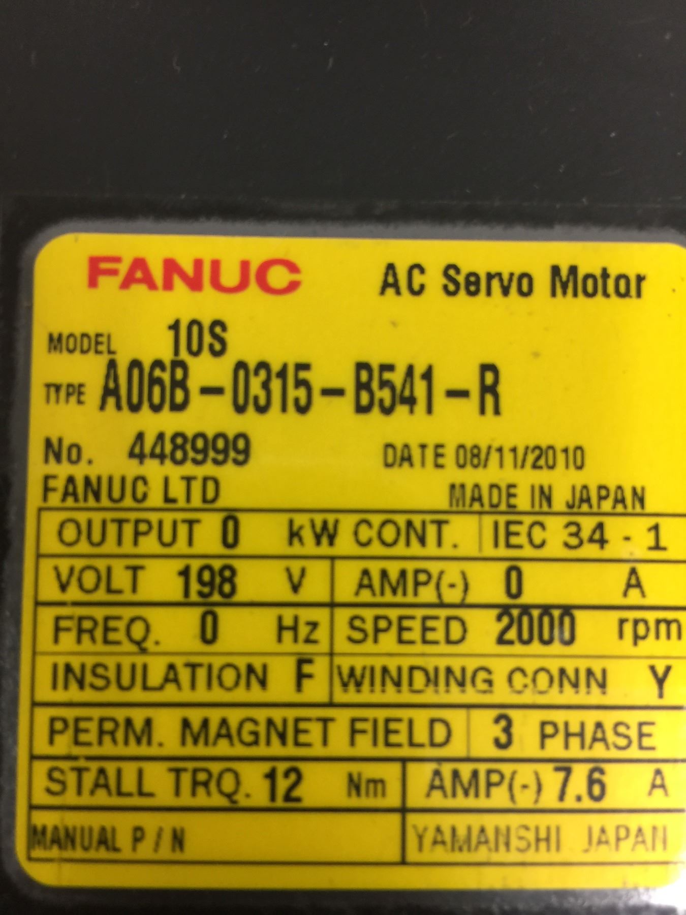 Fanuc A06B-0315-B541-R AC Servo Motor