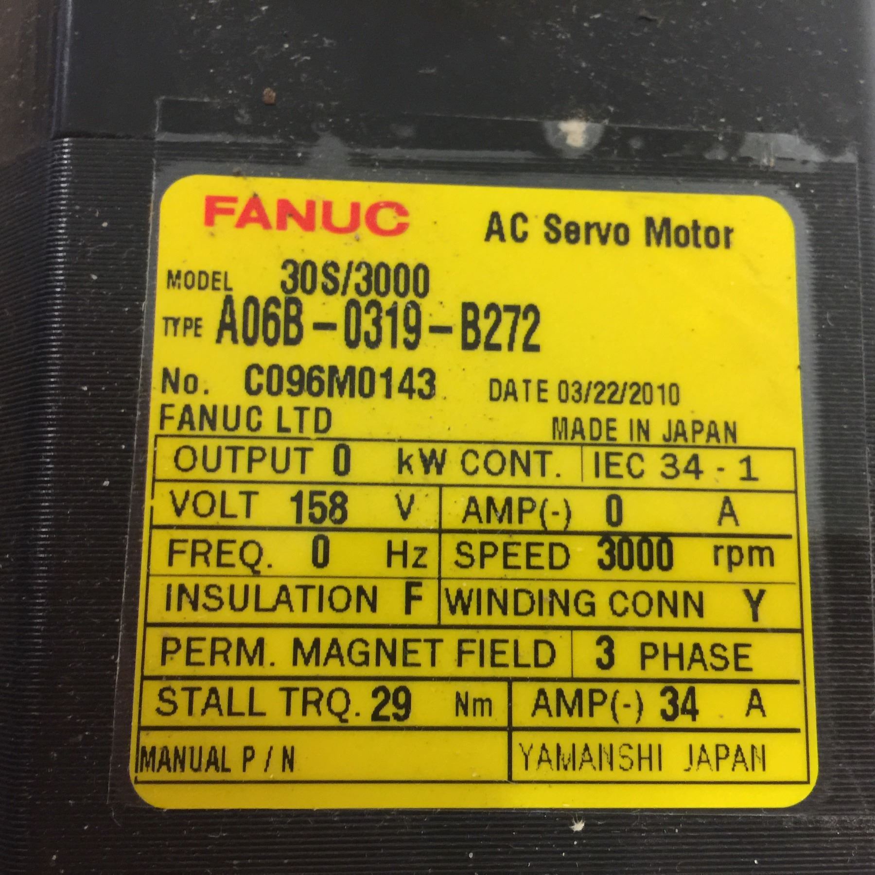Fanuc A06B-0319-B272 AC Servo Motor