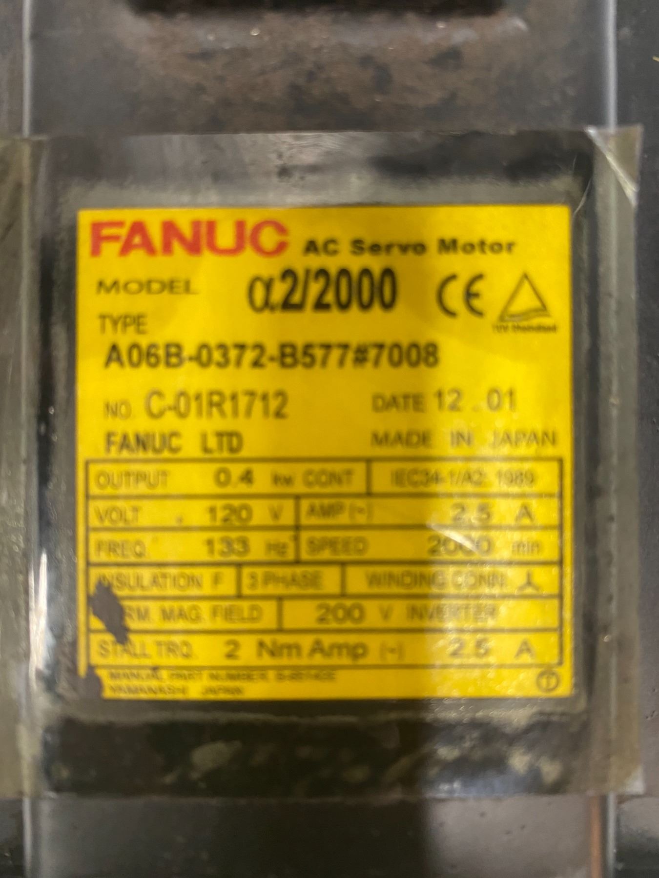 Fanuc A06B-0372-B577#7008 AC Servo Motor w/Encoder A860-0368-T001