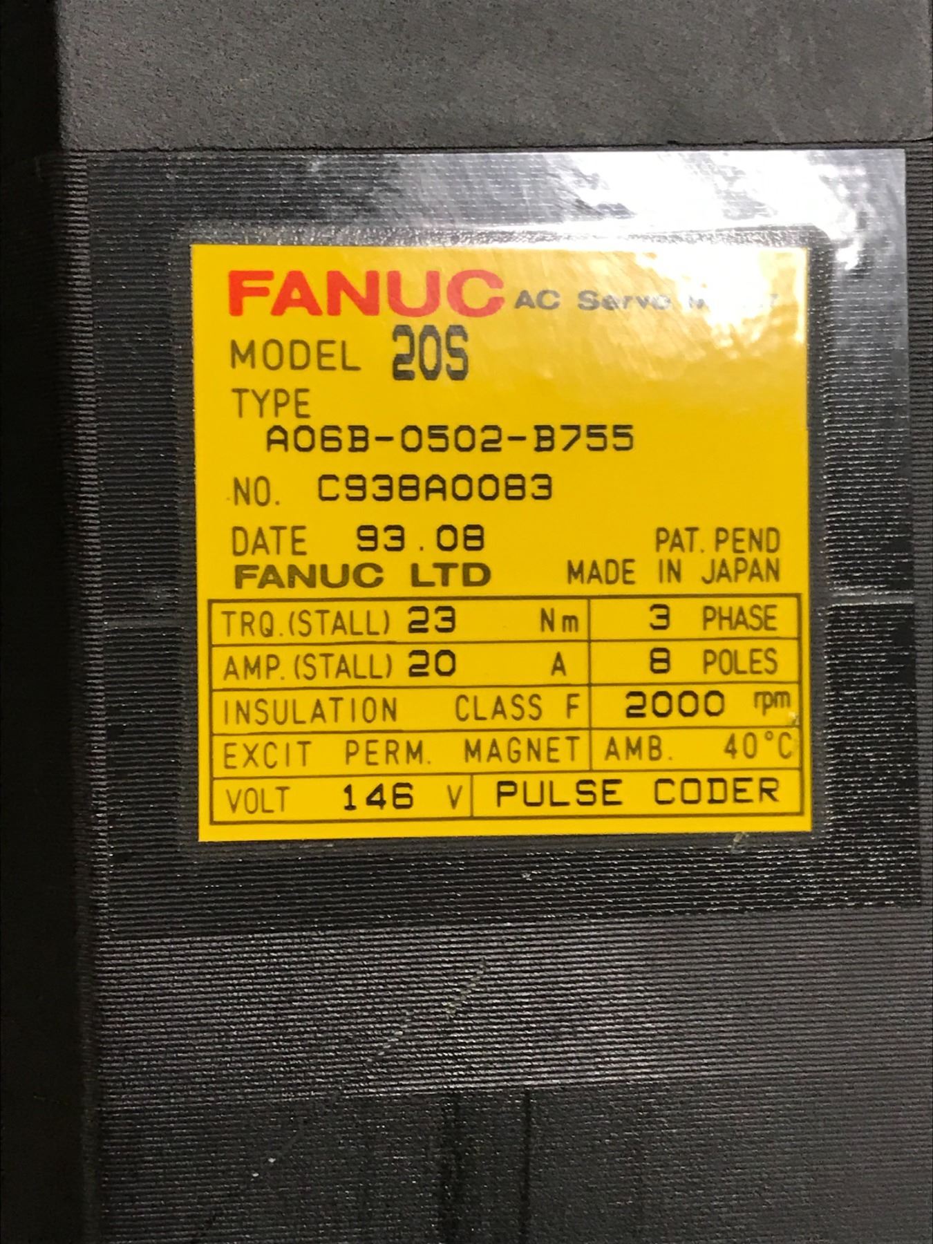 Fanuc #A06B-0502-B755 AC Servo Motor