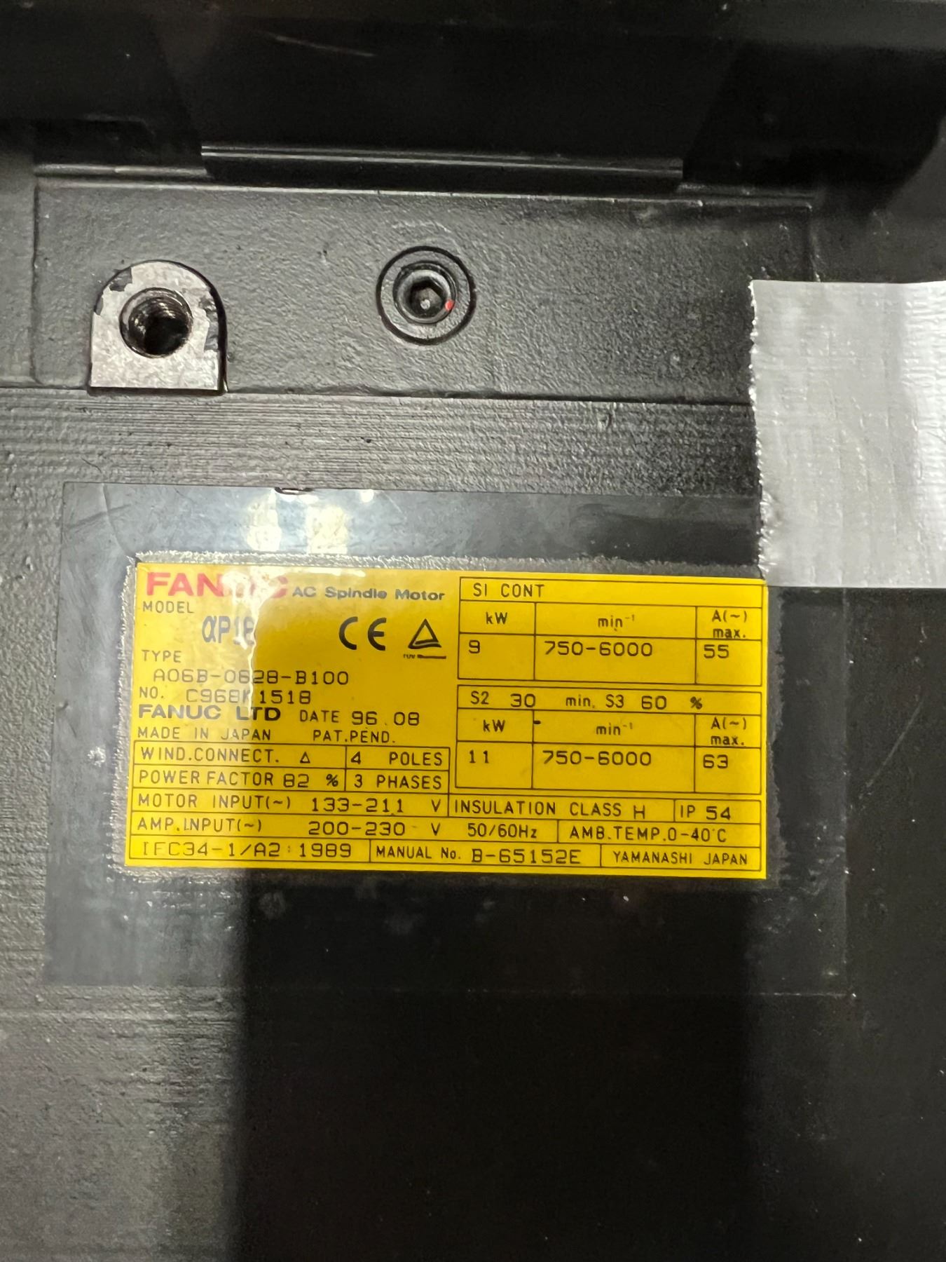 Fanuc # A06B-0628-B100 AC Spindle Motor
