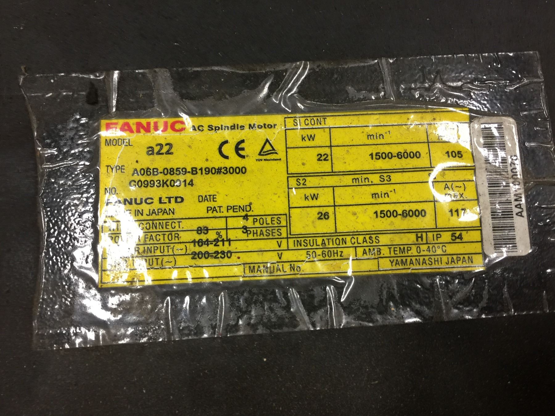 Fanuc A06B-0859-B190#3000 AC Spindle Motor