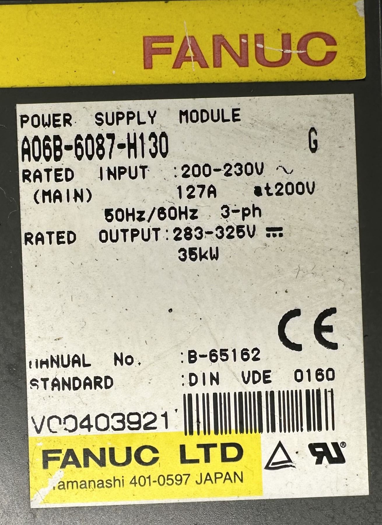 Fanuc #A06B-6087-H130 Power Supply