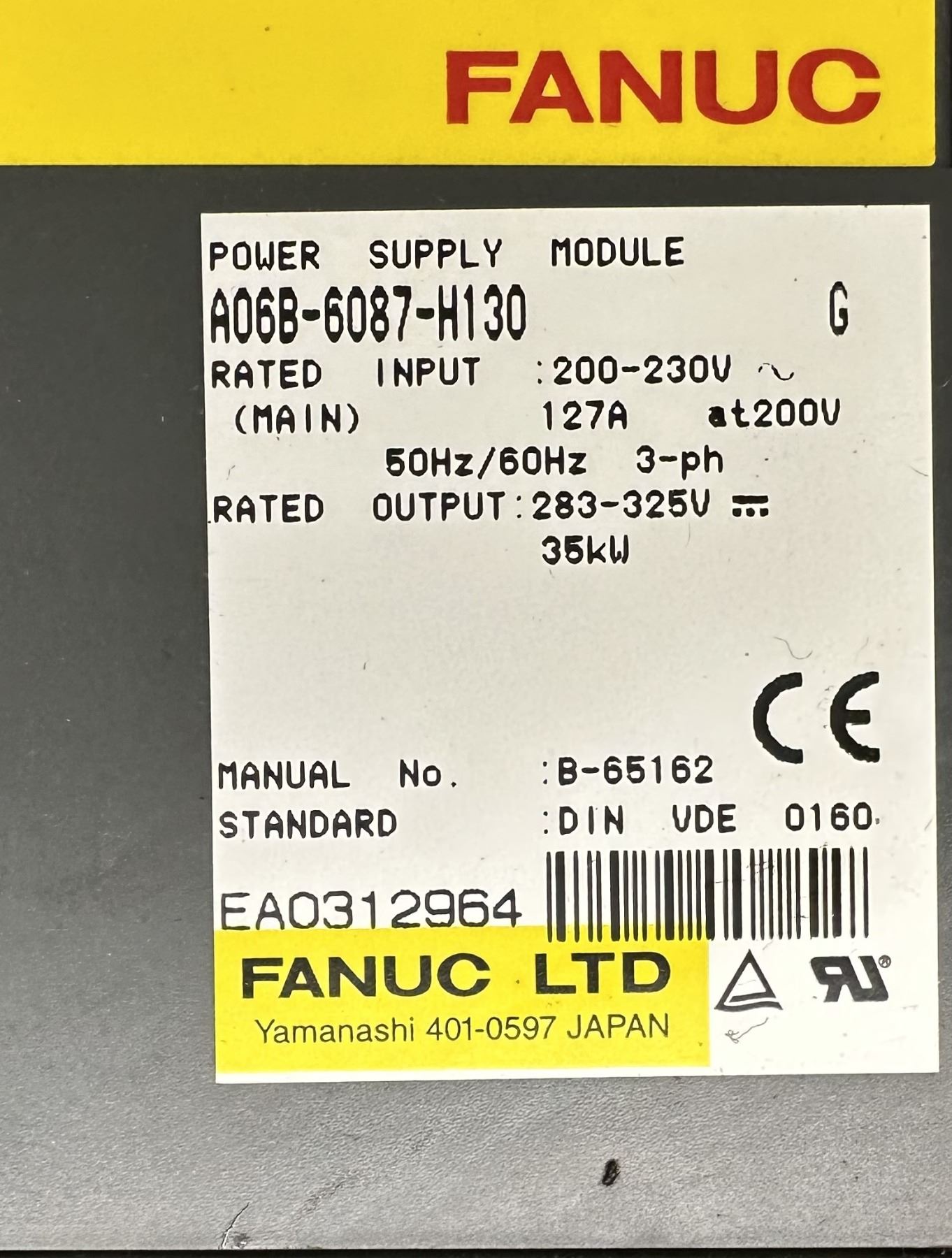 Fanuc #A06B-6087-H130 Power Supply
