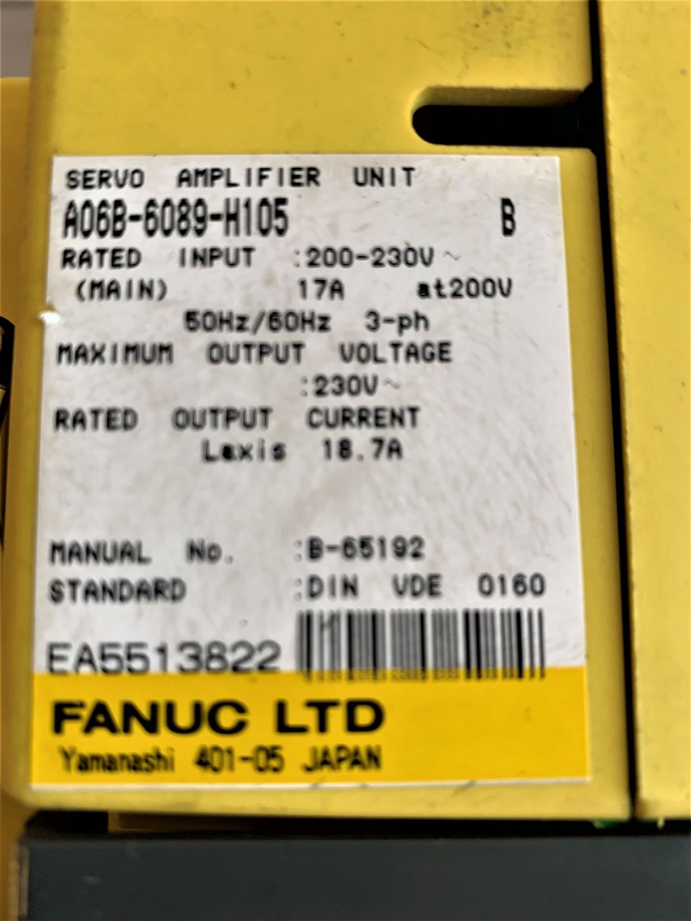 Fanuc A06B-6089-H105 B Servo Amplifier Unit