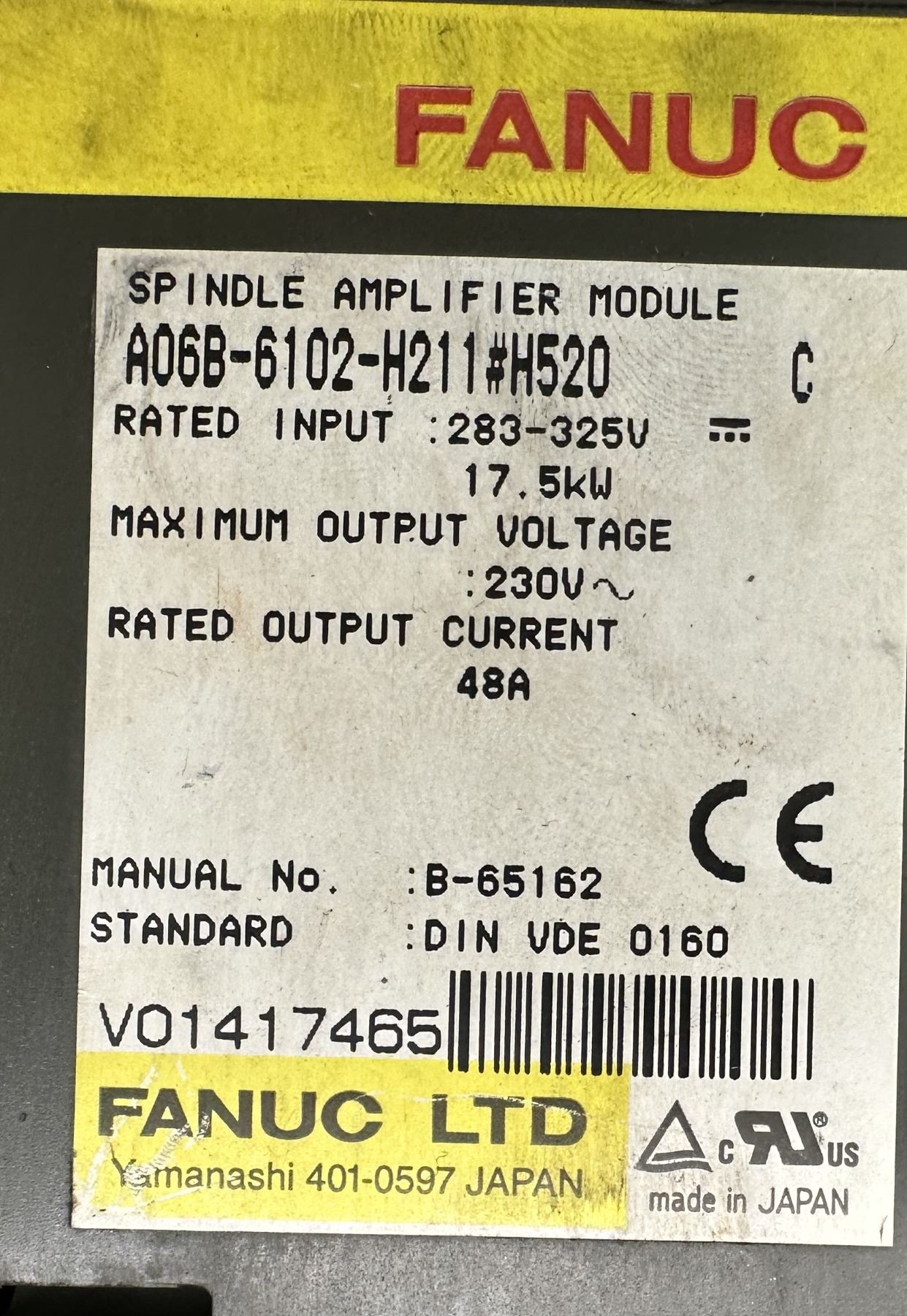 Fanuc #A06B-6102-H211#H520 Spindle Amplifier Module