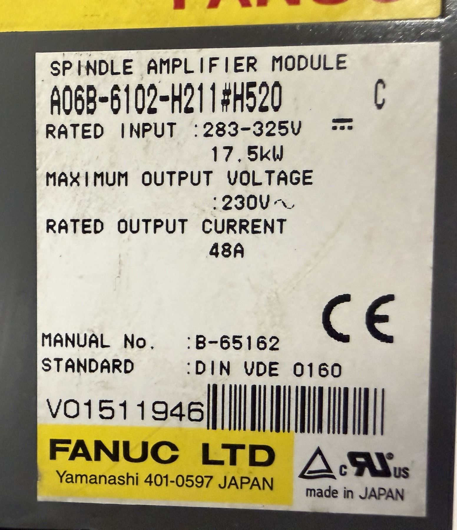 Fanuc #A06B-6102-H211#H520 Spindle Amplifier Module