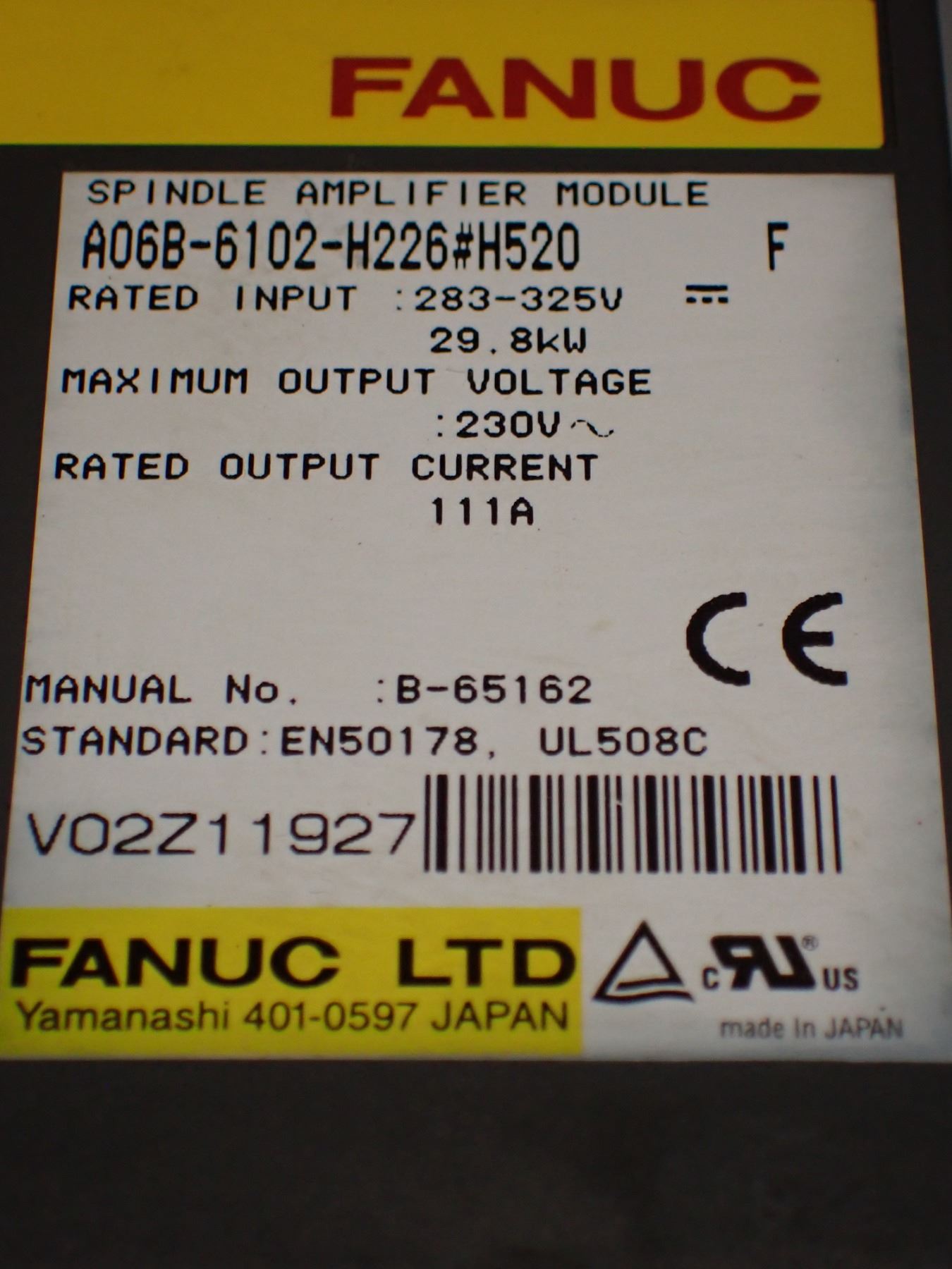 Fanuc # A06B-6102-H226#H520 Spindle Amplifier Module