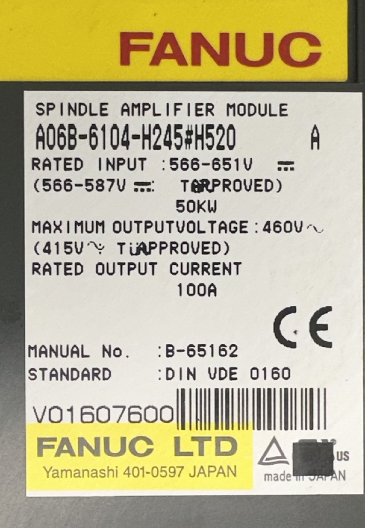 Fanuc #A06B-6104-H245#H520 Spindle Amplifier