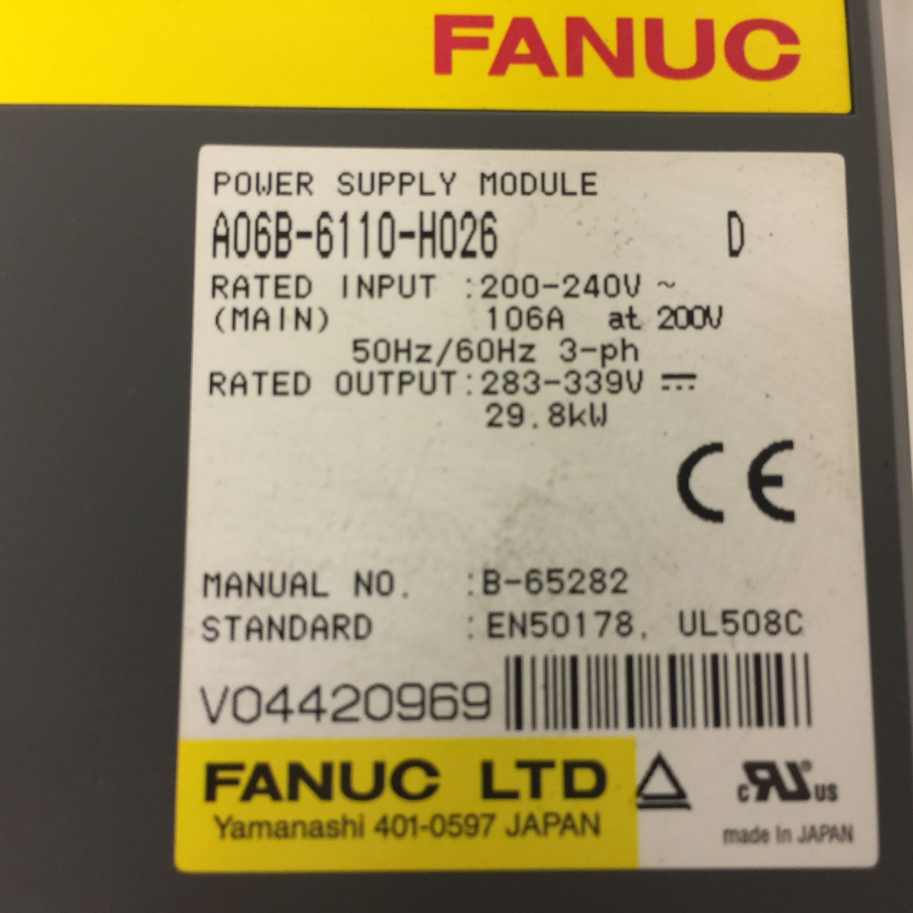Fanuc A06B-6110-H026 Power Supply Module