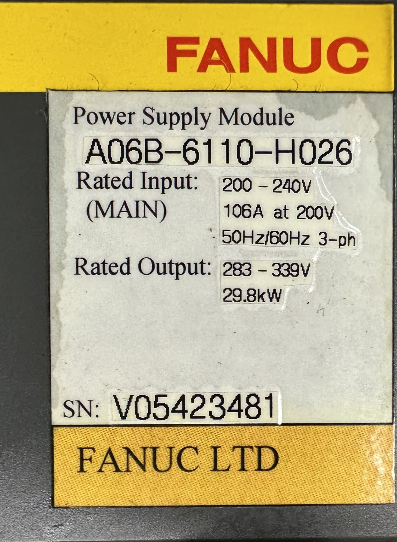 Fanuc #A06B-6110-H026 Power Supply Module
