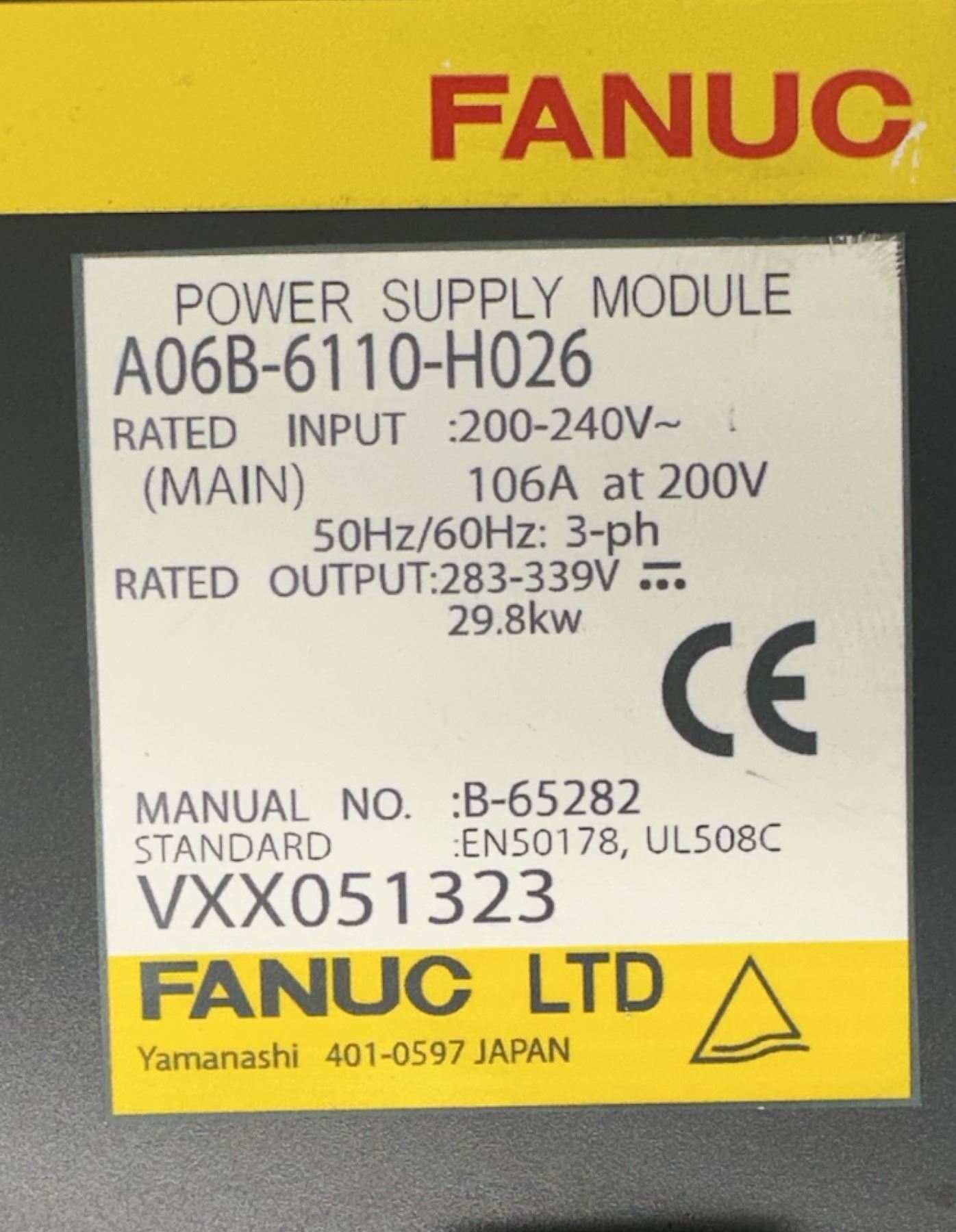 Fanuc #A06B-6110-H026 Power Supply