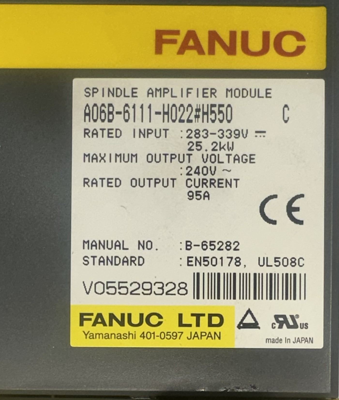 Fanuc #A06B-6111-H022#H550 Spindle Amplifier