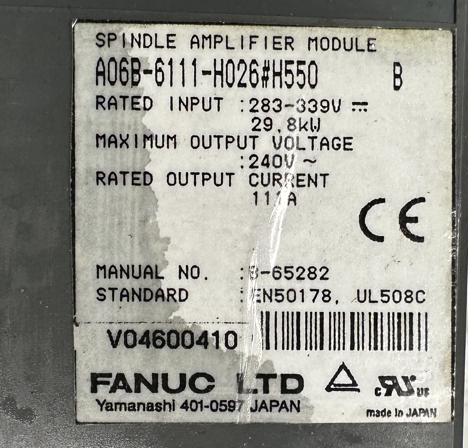 Fanuc #A06B-6111-H026#H550 Spindle Amplifier