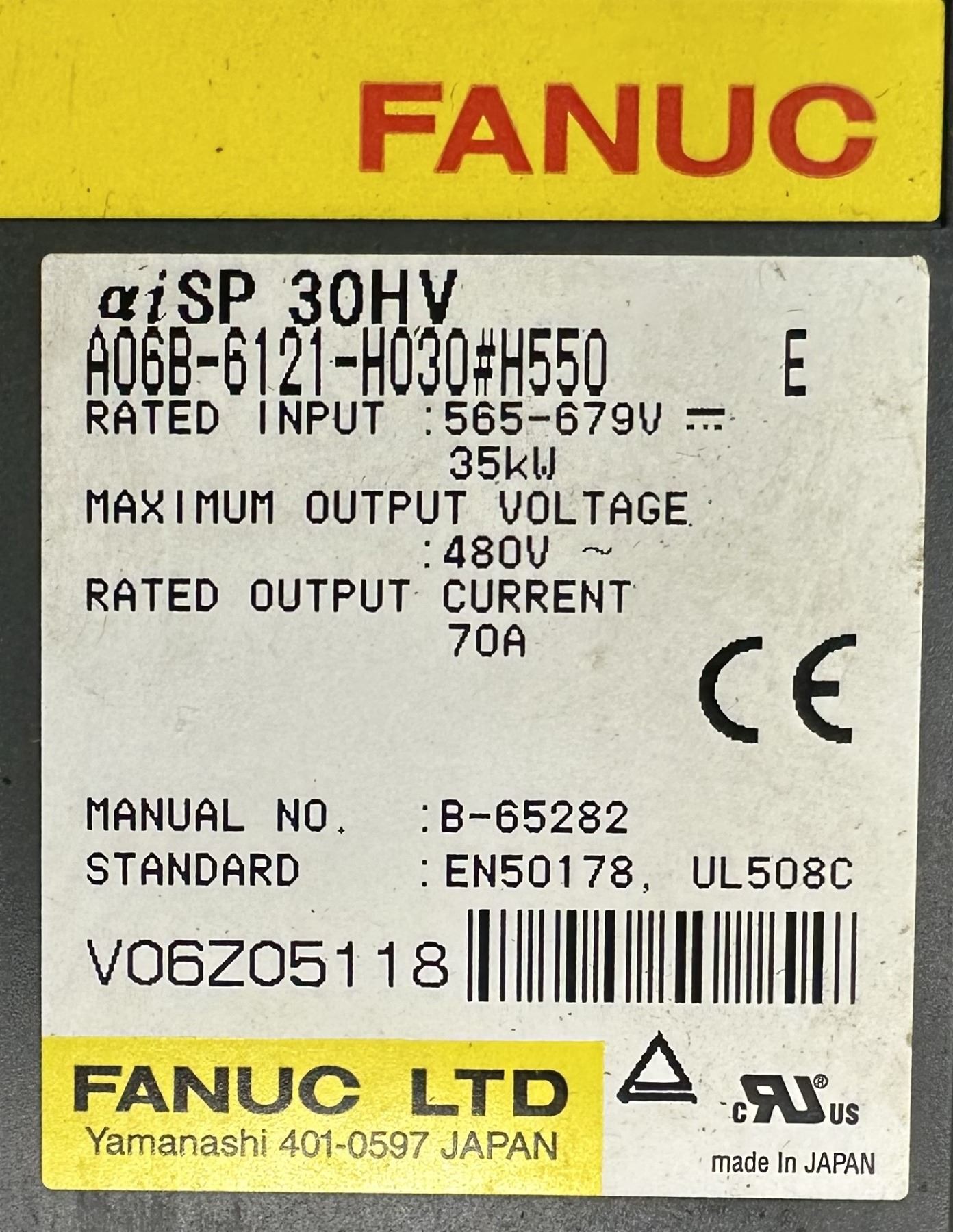 Fanuc #A06B-6121-H030#H550 aiSP 30HV Drive