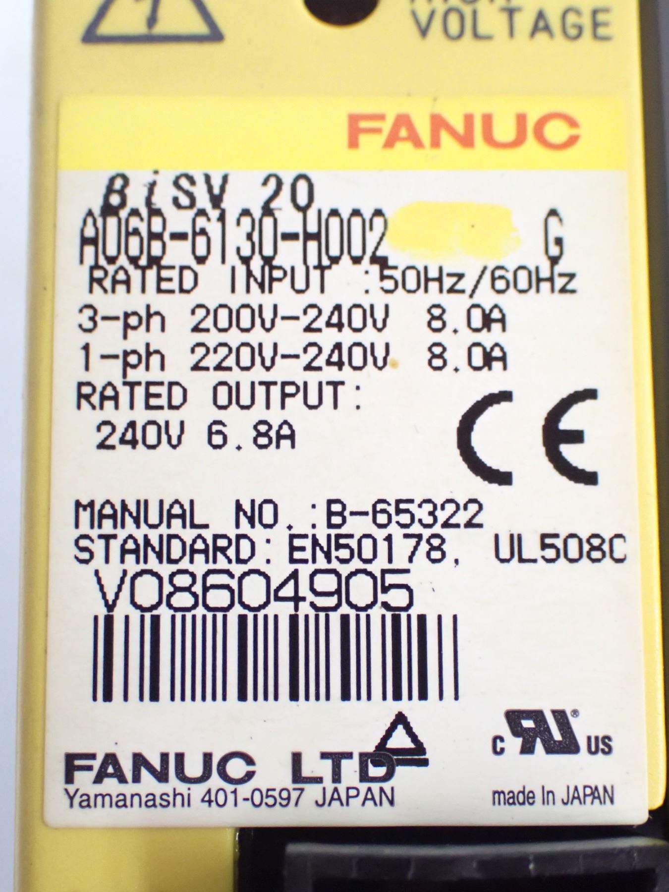 Fanuc # A06B-6130-H002 Servo Amplifier