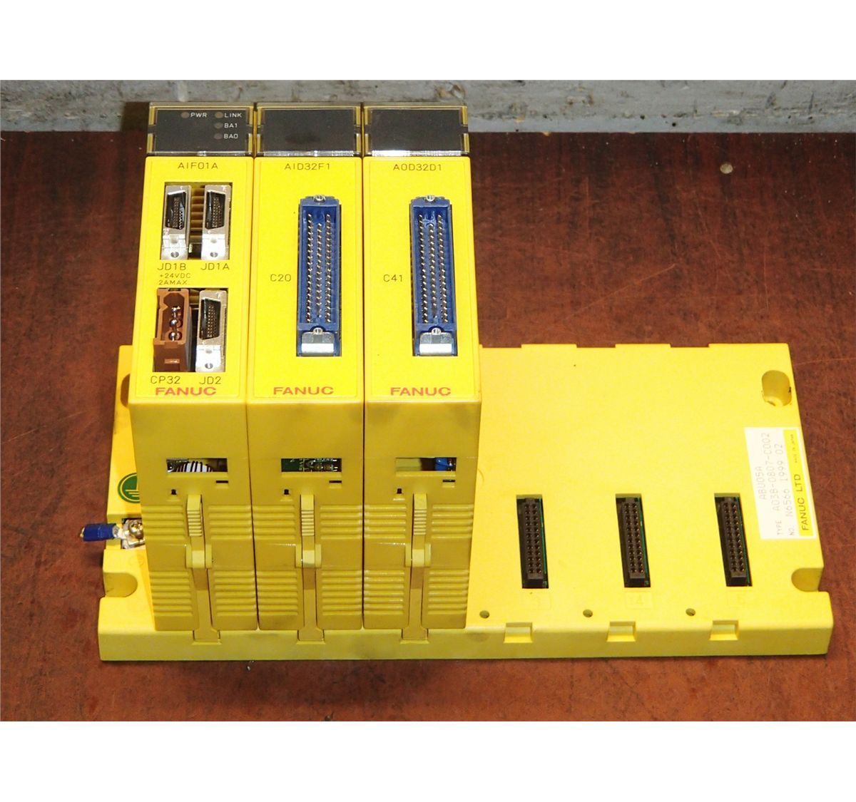 Fanuc ABUO5A Base Board Model: A03B-0807-C002 with 3 Modules AIF01A, AID32F1, AOD32D1