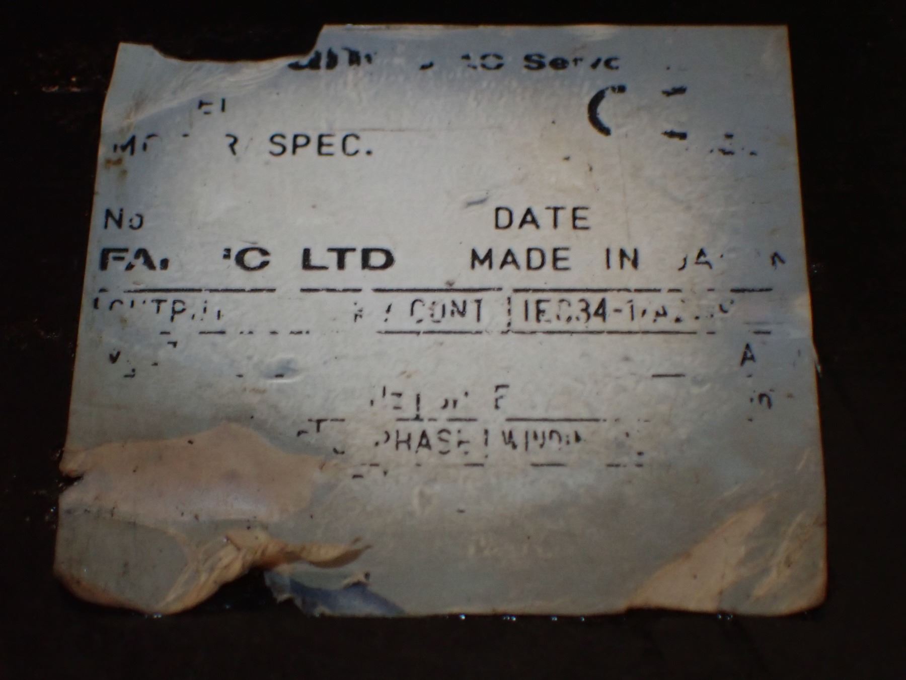 Fanuc AC Motor With Damaged Tag