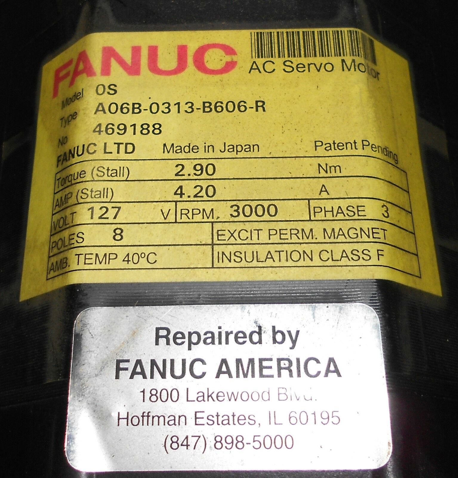 Fanuc AC Servo Motor #A06B-0313-B606-R