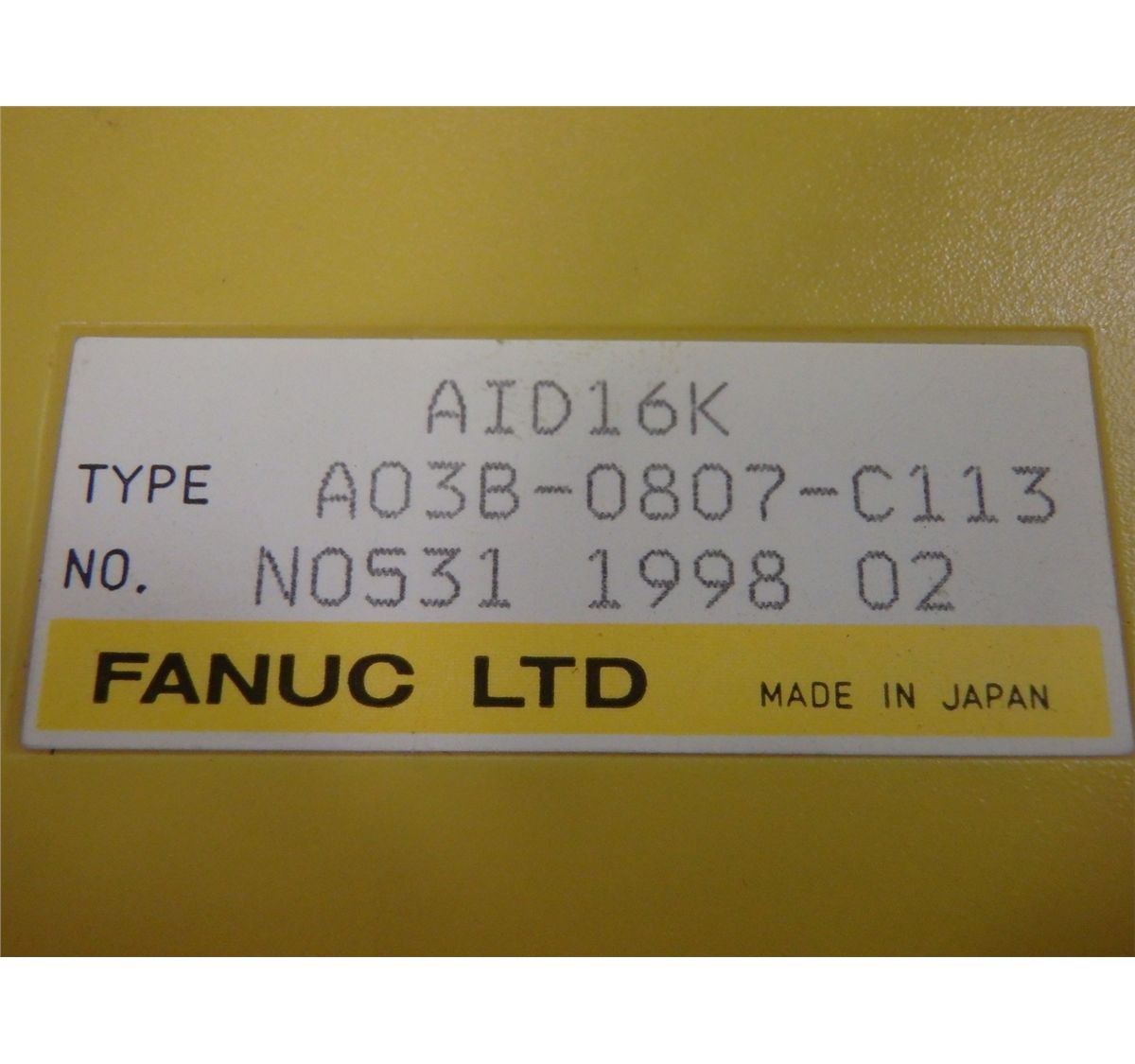 Fanuc AID16K Module, M/N- A03B-0807-C113