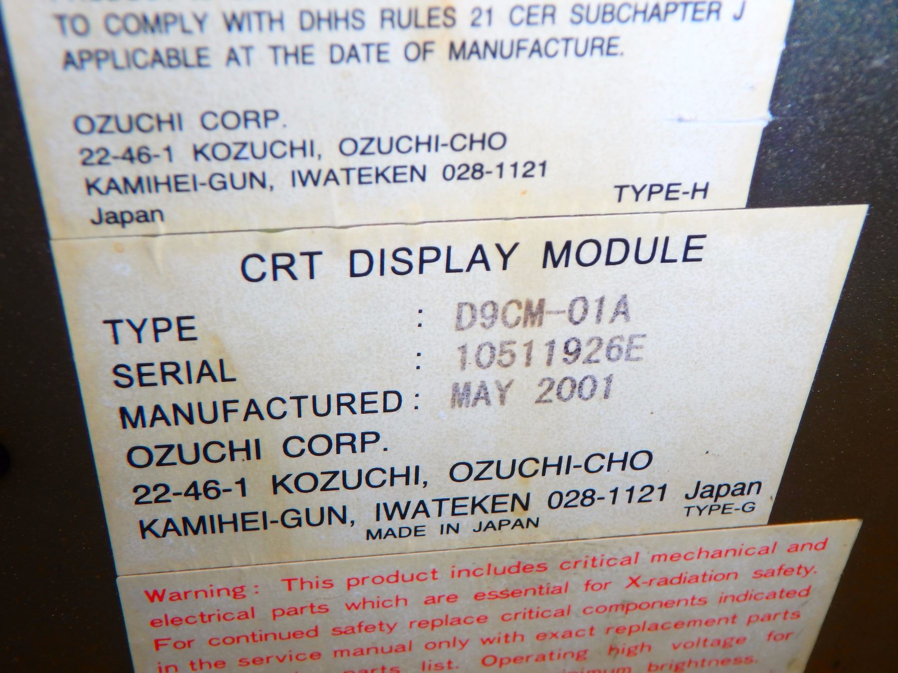 Fanuc// Mankino A02B-0120-C112 9" Professional 3 CRT Display Unit D9CM-01A