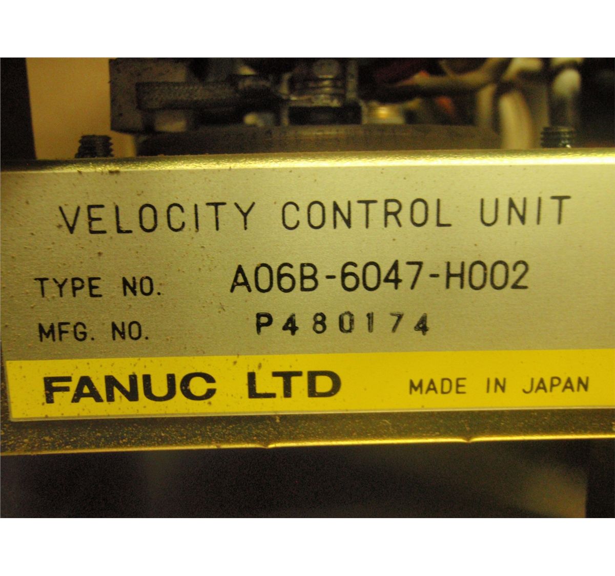 Fanuc Velocity Control Unit A06B-6047-H002, Board #A20B-0009-0320/18E, from service