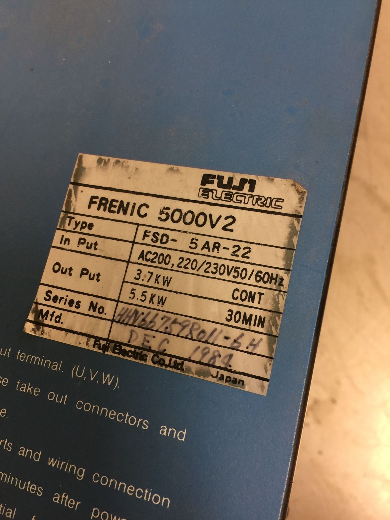Fuji Frenic 5000V2 Spindle Drive, M/N: FSD-5AR-22