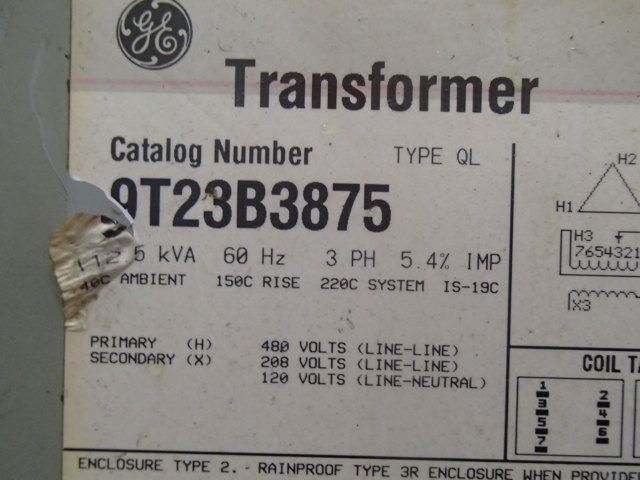 GE 112.5KVA Transformer, Cat. No.: 9T23B3875