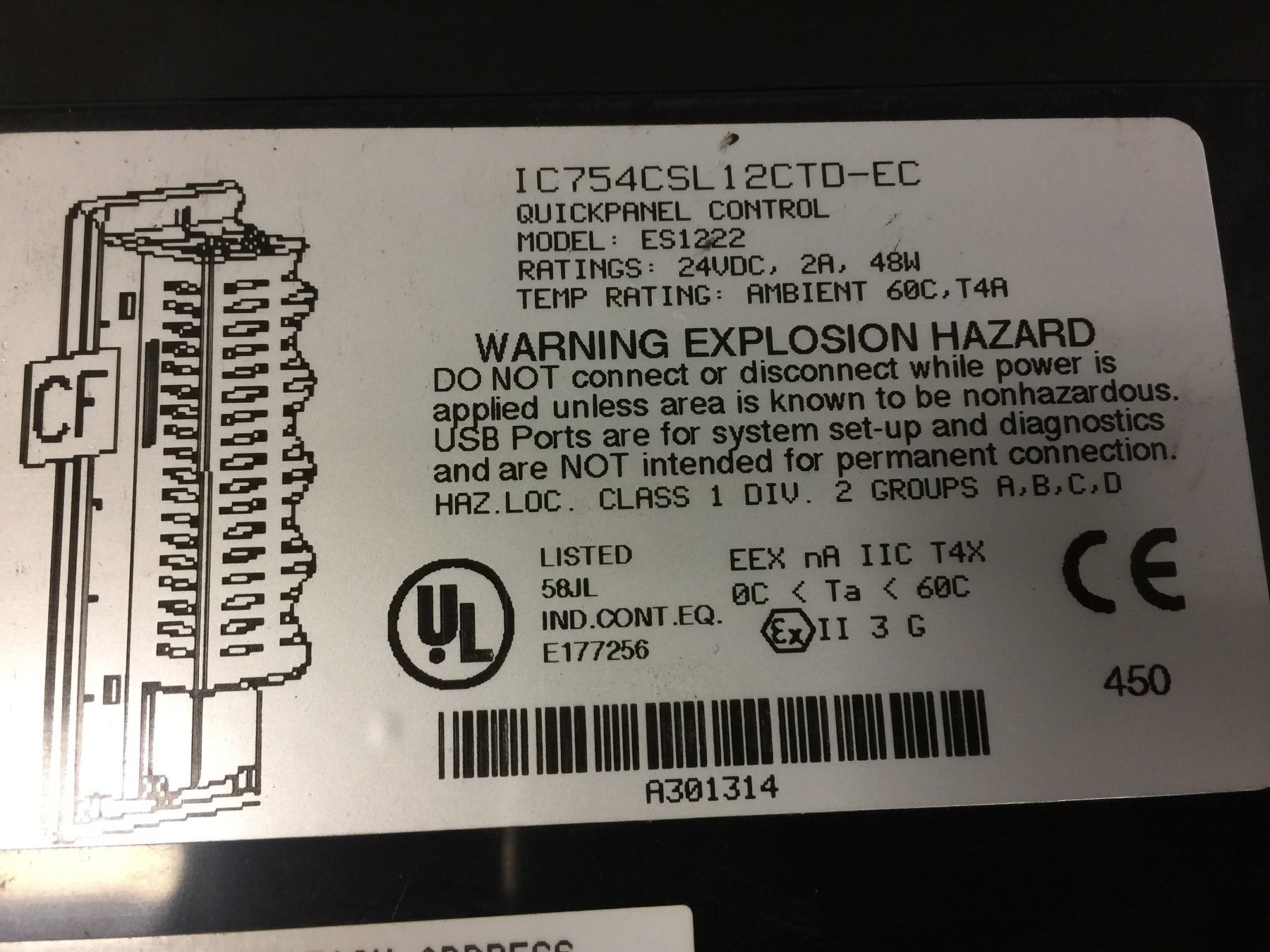GE FANUC IC754CSL12CTD-EC QUICKPANEL CONTROL