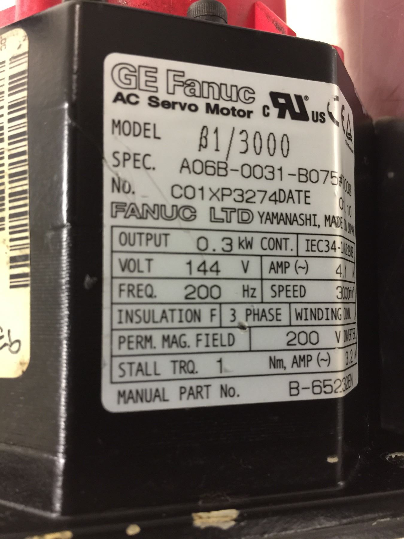 GE Fanuc A06B-0031-B075 AC Servo Motor