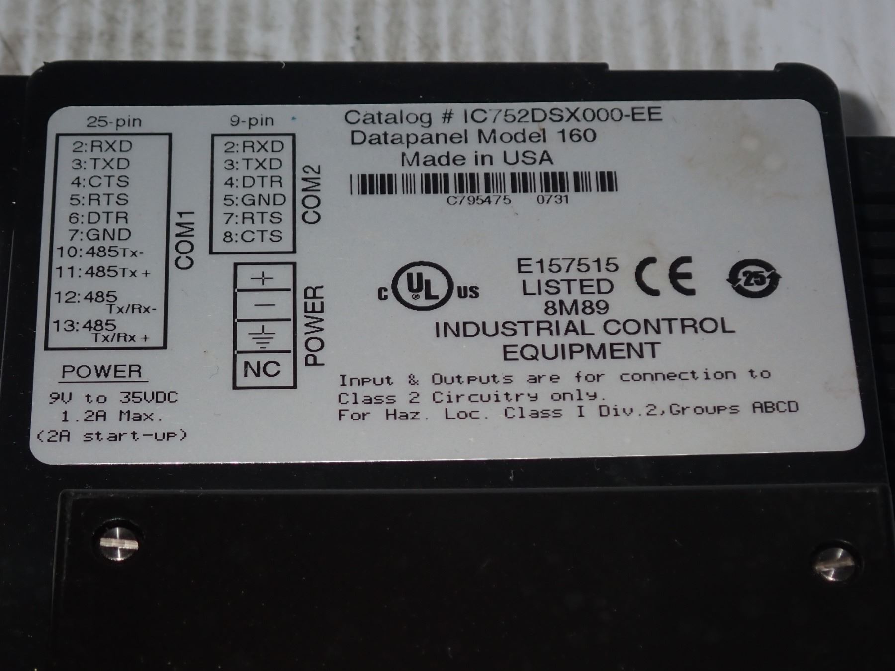 GE Fanuc #IC752DSX000-EE Datapanel Model 160 Screen