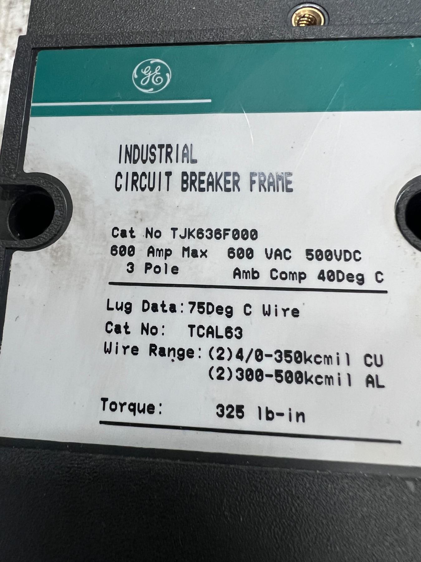 General Electric #TJK636F000 / #TJK636Y600 600 AMP Circuit Breaker