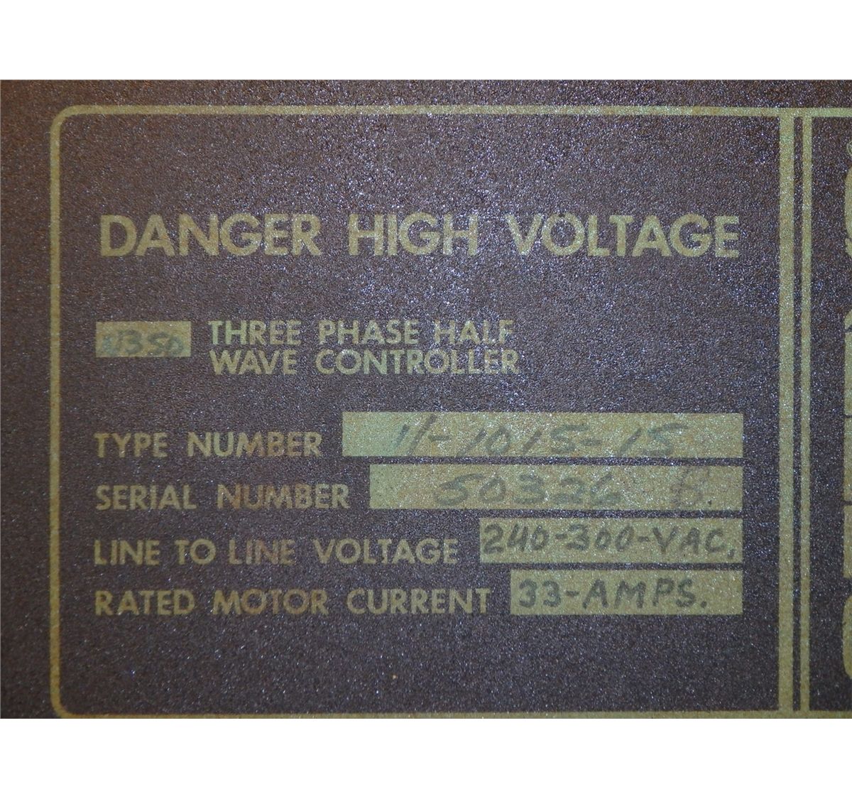Getty's #11-1015-15 Three Phase Half Wave Controller