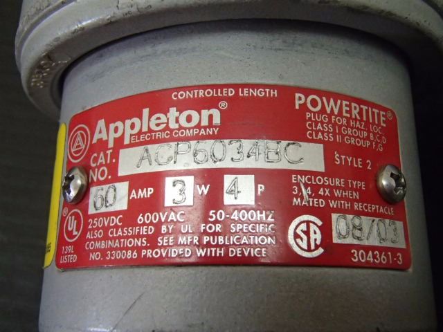 (2) Appleton ACP6034BC, 60A, 3W, 4P, 250VDC, 600VAC
