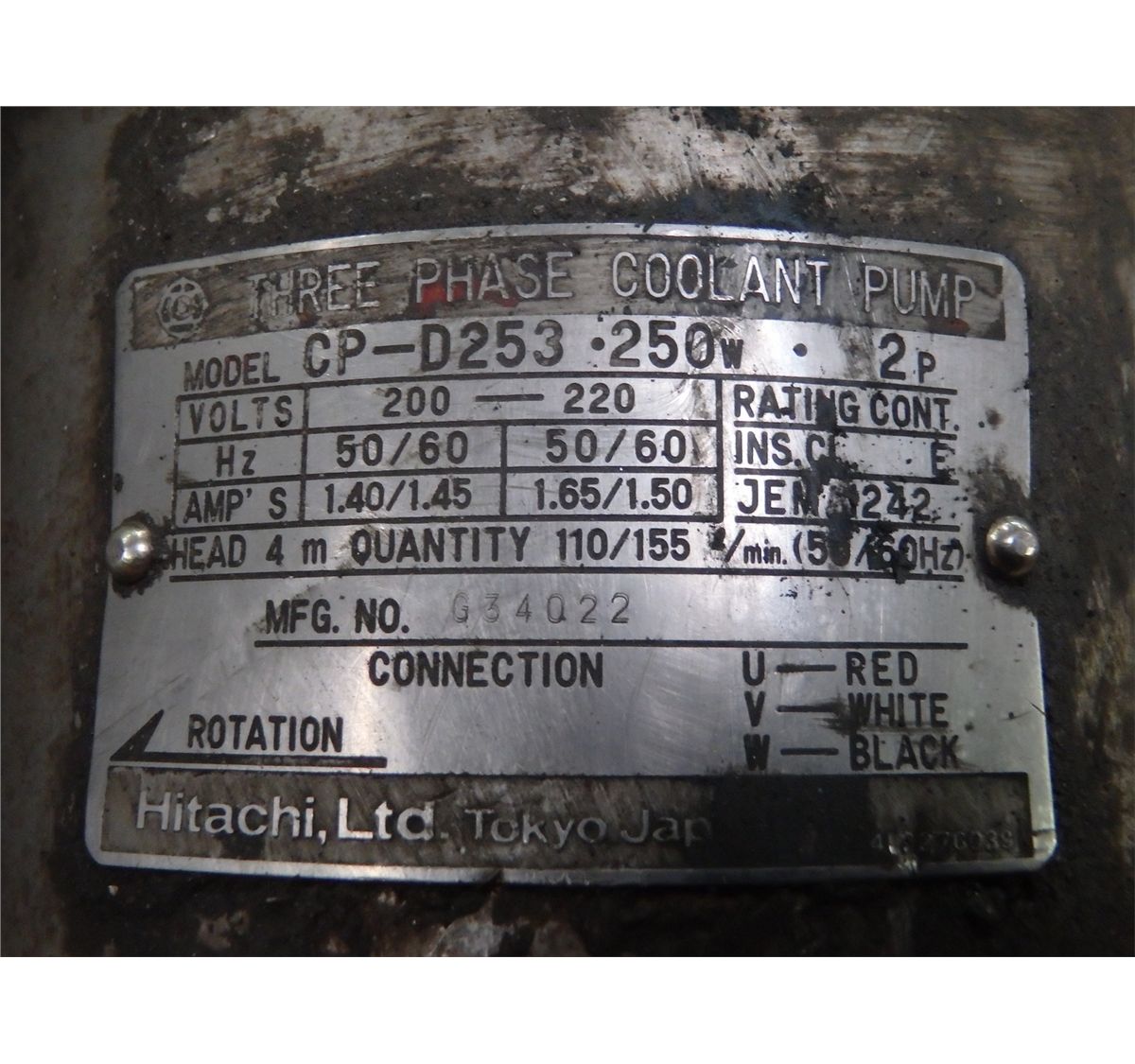 Hitachi Coolant Pump, M/N- CP-D253-250W-2P