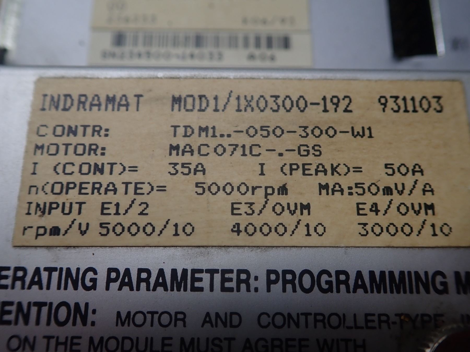 Indramat AC Servo Controller, M/N: TDM 1.2-050-300-W1-000