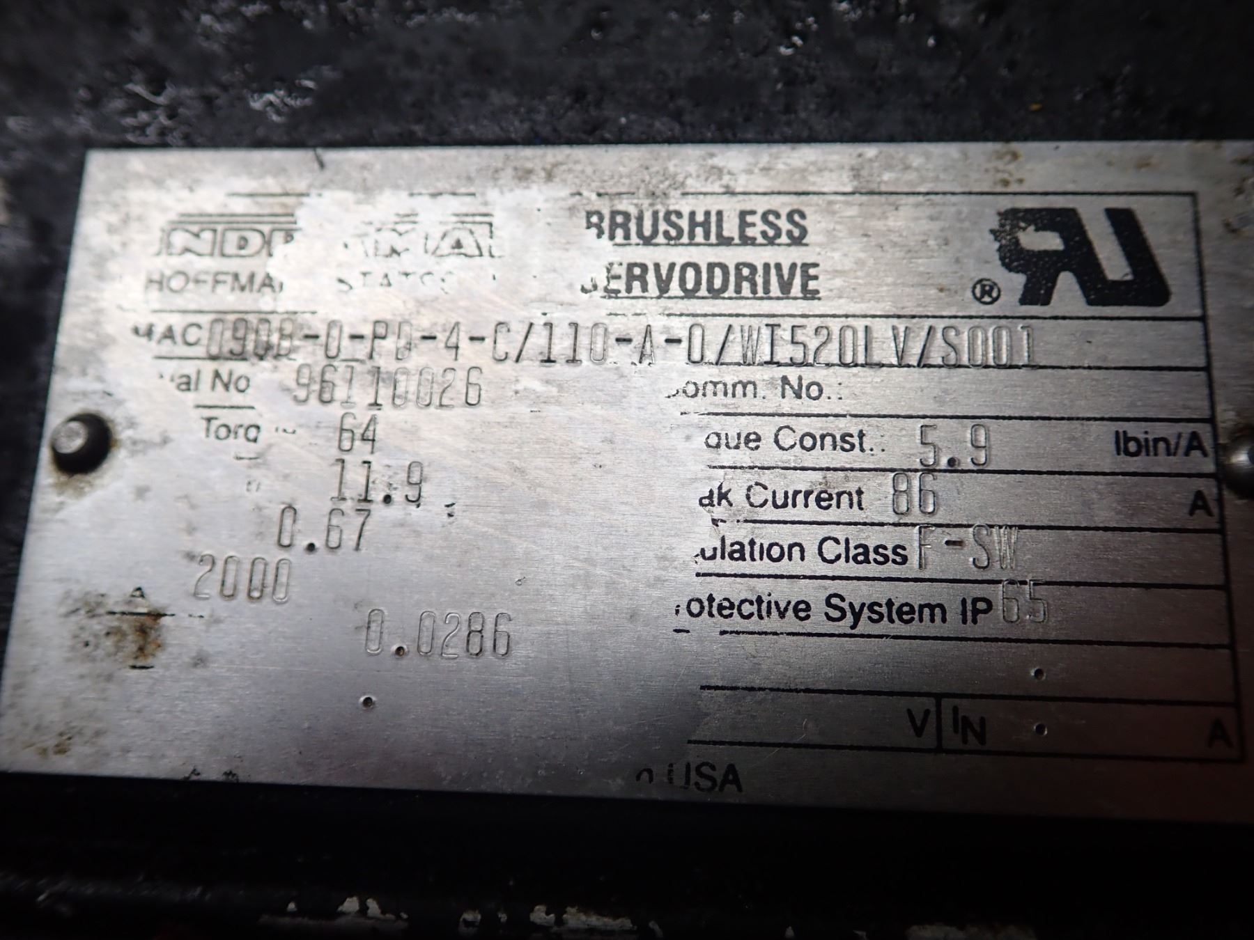 Indramat Brushless Servodrive Motor, M/N: MAC 090B-0-PD-4-C/110-A-0/WI520LV/S001