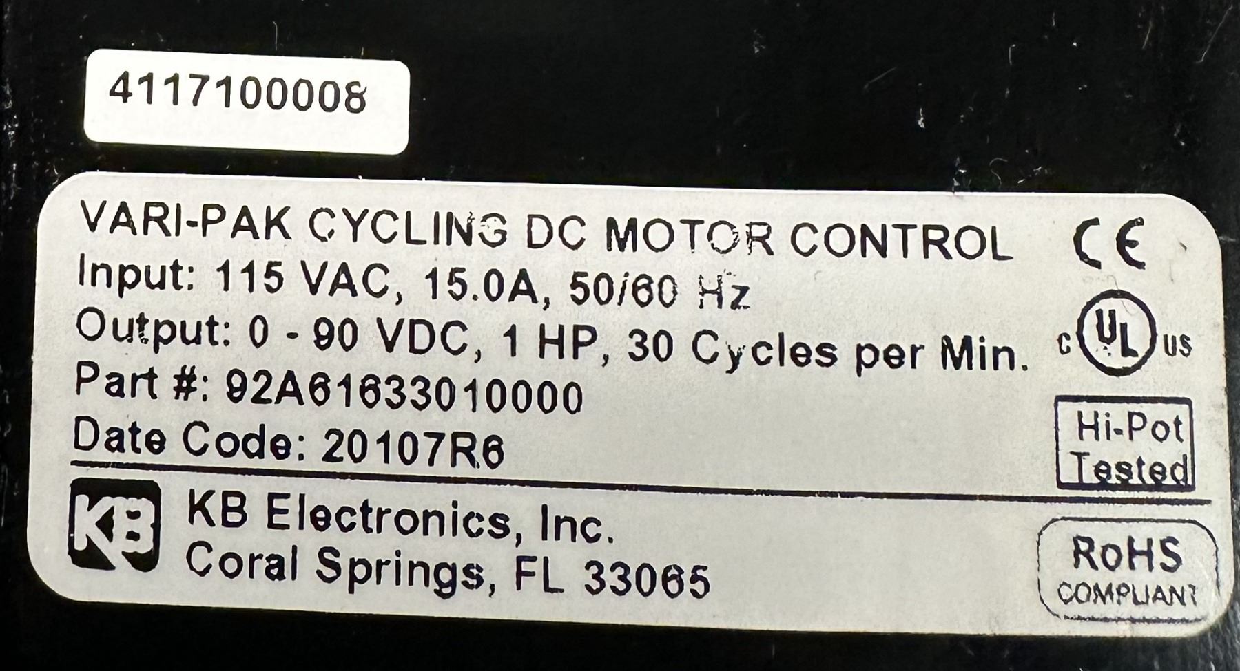 KB Electronics #92A61633010000 Vari-Pak Cycling DC Motor Controller
