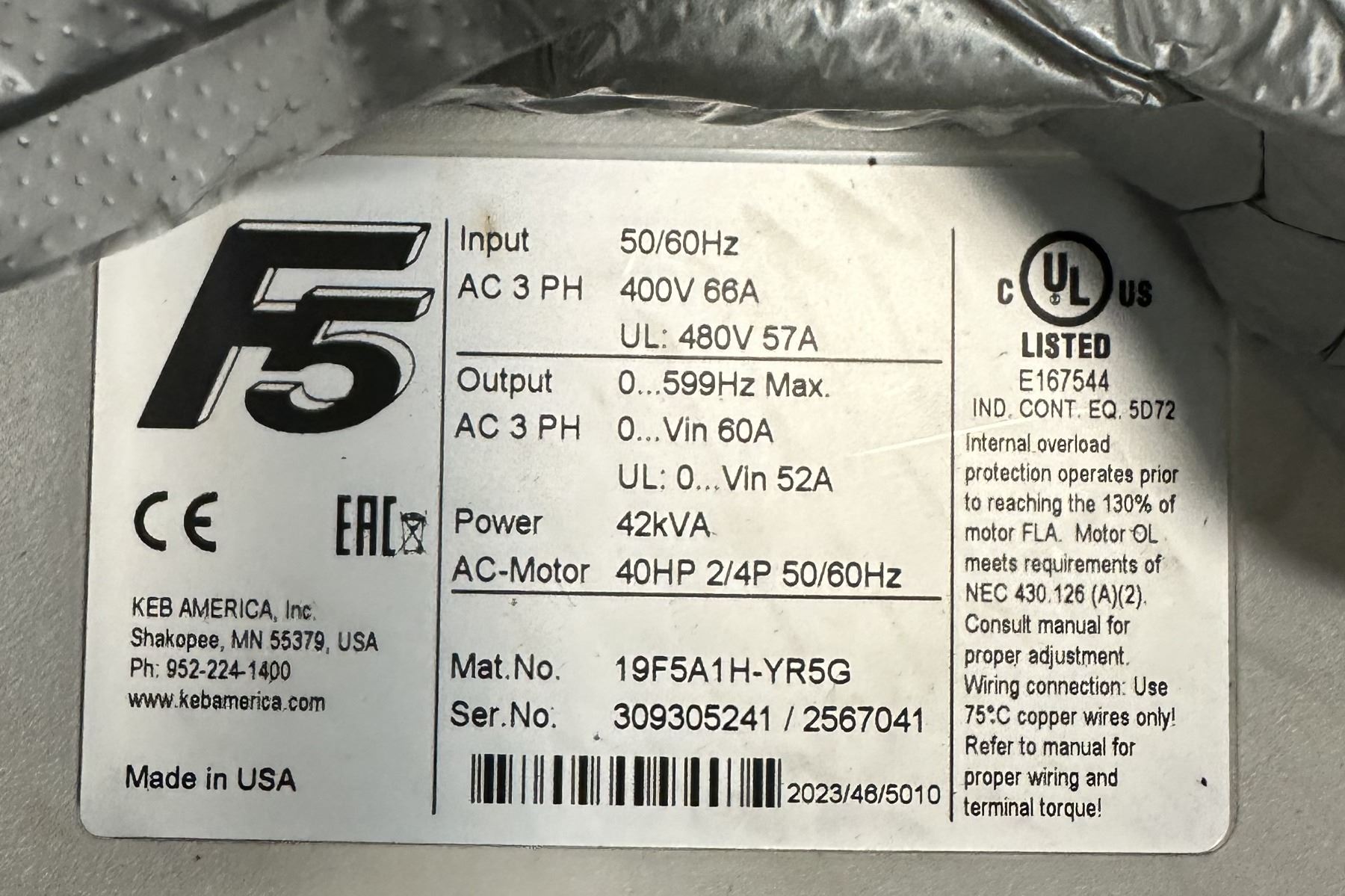 Keb #18F5A1H-YR6A Variable Frequency Drive